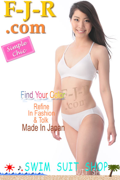 キャミビキニ水着ホワイト無地 > ワンポイント - Cami Bikini - 現在、サイズ 7号S ・ 9号M ・ 11号L です。 金額 \10065- ( 税込 ) ココ最近、V-ネックラインが、気になりましたので 今回のテーマにしました。 Vネックと言えば、最近、レディースファッションでも出てきている、 人気の、カシュクールなども、同じVネックです。 F-J-R では、シンプル-シック テーストに。 ラインを美しいディテールで仕上げました。 - - - タンキニより少しカワイイ ファッション-デザインのタイプ。 キャミビキニ。 だと〜 タンキニとは、タンクトップビキニでしょ。 だから、キャミソールビキニだと、 キャミビキニ〜! キャミキニかな 。。。 その「 キャミキニ 」は、 今、流行の水着のスタイリング、 「 重ね着 」 をも、意識して、 水着on水着、 水着in水着 ? なんか、 トーンonトーンみたいな・・・ その「重ね着」 も、しやすいようにしました。 - - - - - ☆ ☆ ☆ 新型に ホワイト のキャミビキニを追加。 キャミビキニのブラTop フロントのディテールは 女性的でやわらかいイメージのVネックラインにし アンダーバスト部は着づれしない様に、少し太めのゴムにしました。 バックは、肩紐の交差したクロスバック仕様に 又、重ね着も出来るようにパットを抜き差しできる裏面の仕様にし 下記の様に、三角ブラなども中に着れるようにしました。